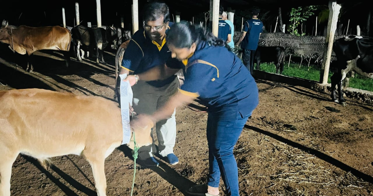 The Rotary Club of Jaffna Peninsula launched a new community safety initiative called the “Cattle Safety Reflector Project” in the Mankulam and Omanthai areas on Sunday (12.10.2025). The project aims to reduce nighttime vehicular accidents caused by stray cattle on the roads and protect the animals’ lives by distributing free reflective safety belts to cattle and raising awareness among owners in the surrounding farms.